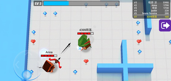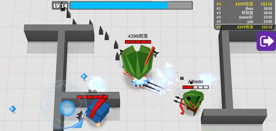 4、进入游戏后,玩家需操纵角色用弓箭射击敌方玩家,每提升一级还可选取技能,或提升角色属性,属性的提升也就是攻击力的提升;