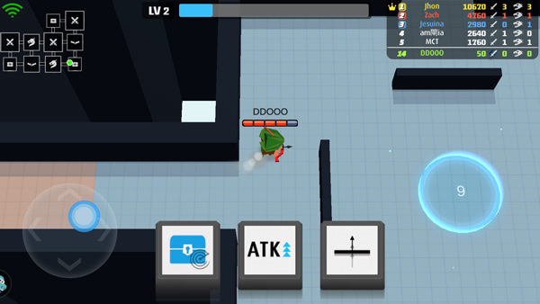 游戏采用经典直观的双摇杆操作:左摇杆控制走位,右摇杆控制射击方向。这种设计让新手能迅速上手,专注于射击与走位的乐趣。在混乱的战场中精准命中敌人,体验“一击即中”的爽快反馈是游戏的核心魅力。