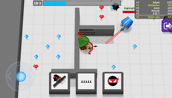 在刚进入游戏是会让玩家选择一个技能,可能出现的技能会有飞镖,火炮,激光,斧子和弓箭加强。