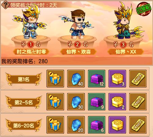 上面是冲榜结束时的排名,当然并没有氪金,说实在这排名的话可能并不算高,不过在不氪金的情况下应该还算一般吧