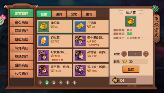 首先是兑换商店,里面是利用原本购买东西的,这里的话都是挺贵的,主要是元宝难搞