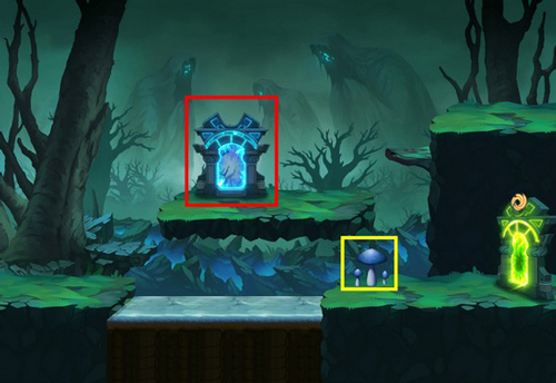 注意事项:中间有1个捕蝇草,左边1个蘑菇。两边位置随机出现1个蓝门