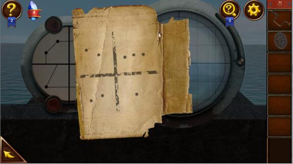 4、打开图纸,去船头的雷达上按照图纸的提示,点击获得图案提示,分别找出雷达上红色点对应的4个图案,后面在舵盘上有用。