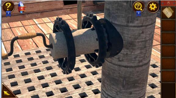 5、然后再去船中间的旗杆,将齿轮和摇把安上去,摇动摇把。