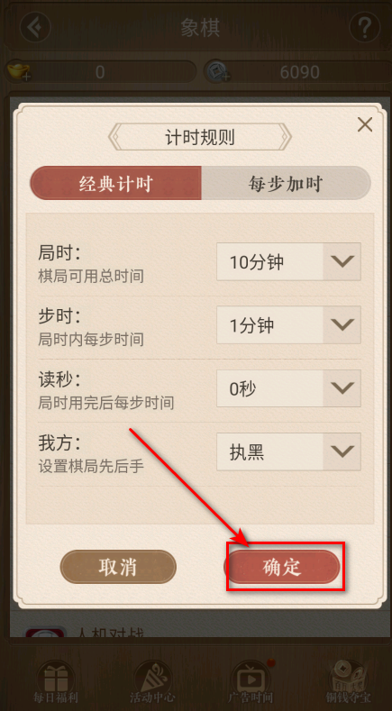 系统会匹配与你棋力相当的对手,双方总时间为20分钟,步时3分钟,读秒1分钟,超时判负。