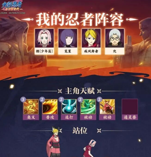 职业特点:以风遁忍术和连续攻击为主,擅长打出瞬间爆发,也能激励队友。