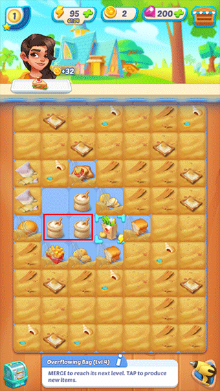 3、当合成顾客需要的餐品时,点击顾客边上的标识给她