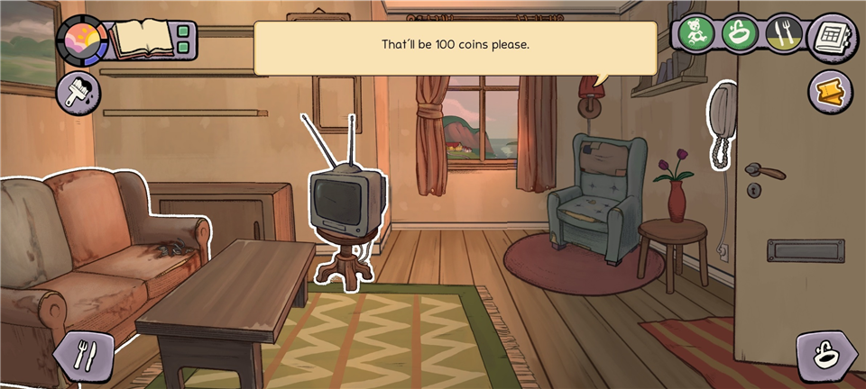 5、回到客厅可以看到有人在敲门,点击门然后付钱就可以了。