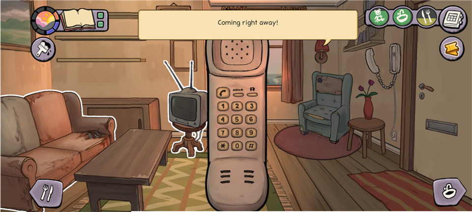 10、玩家回到客厅,打开包裹,点击屏幕右侧的电话,选择拨打用户,选择“披萨”就可以了。