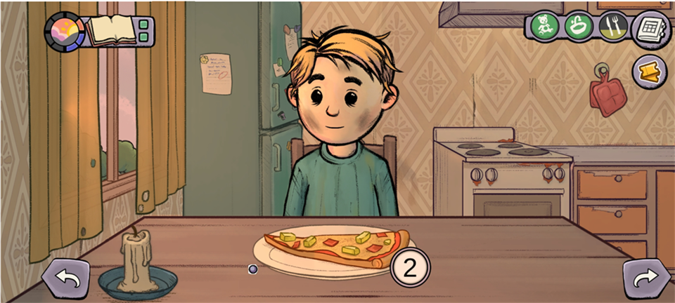 6、之后来到厨房点击右边的桌子就能开始吃披萨了!