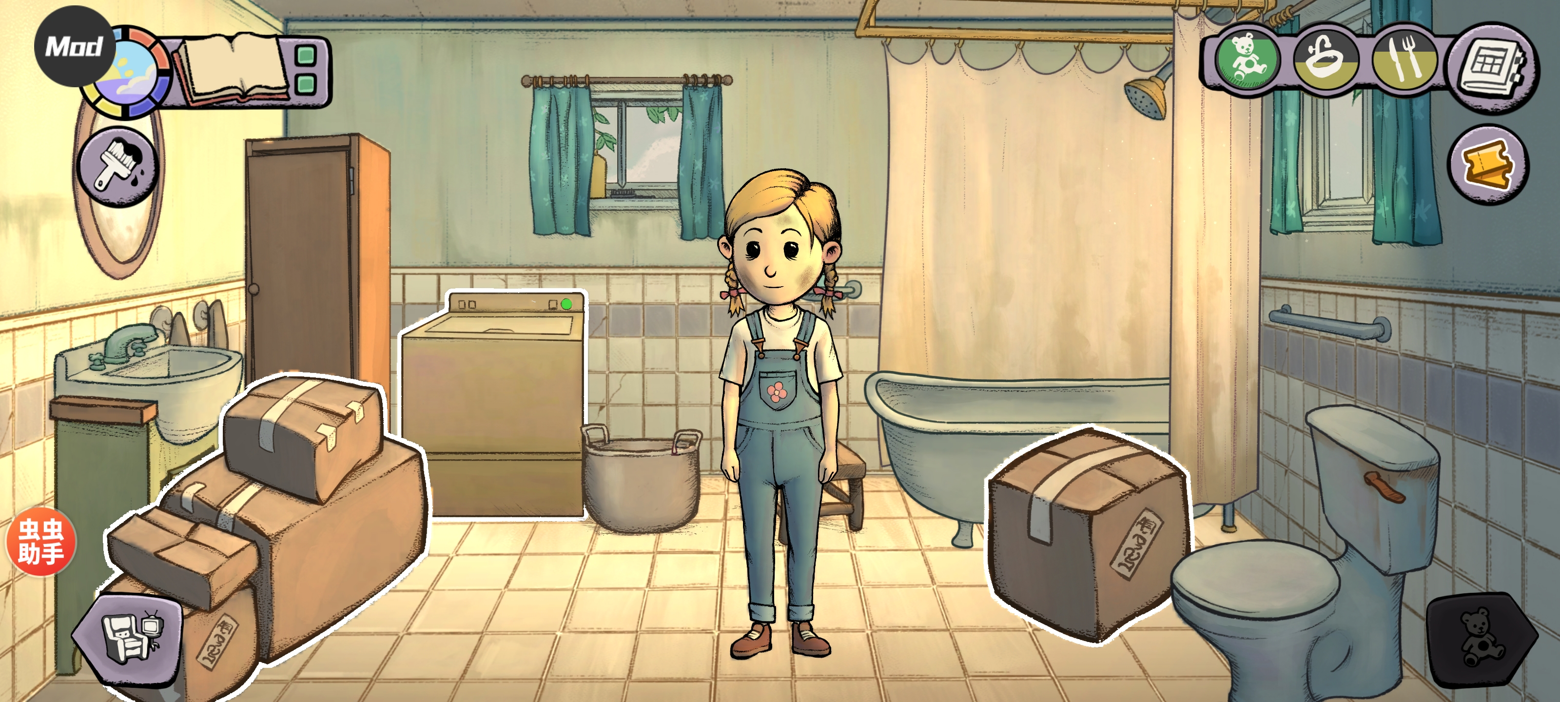7、因为搬家的缘故,屏幕右上角的“清洁度”以及过半,所以需要玩家及时给孩子洗澡,点击浴盆即可。