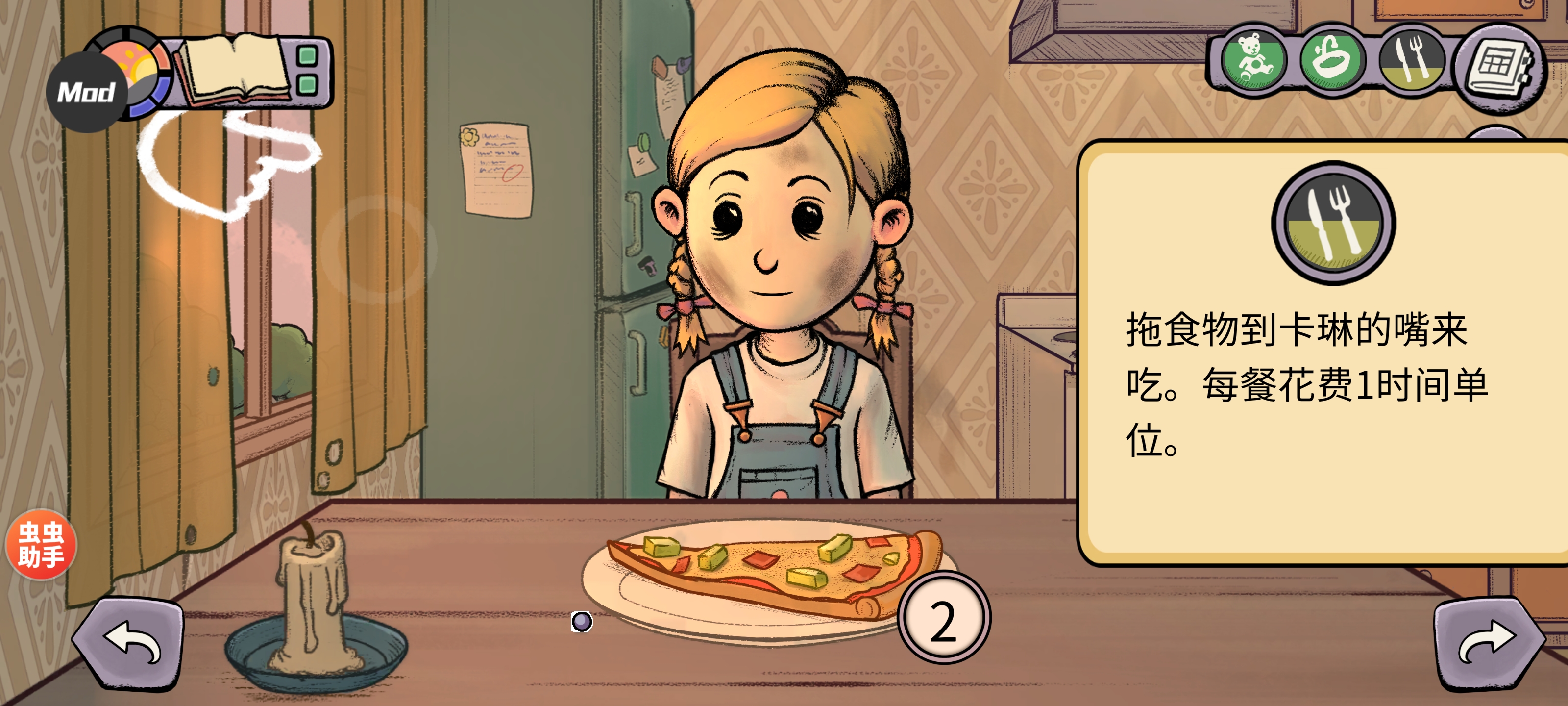 12、玩家需要将食物拖拽给孩子,这样才就可以进食增加饱腹度了。