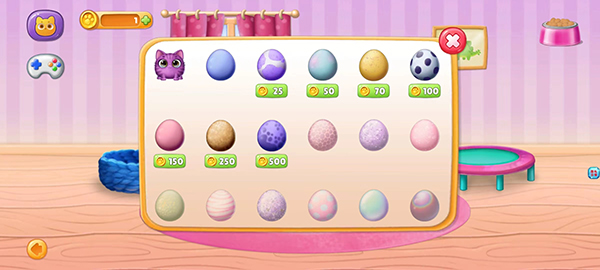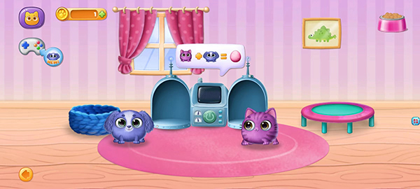 1、模拟饲养宠物的过程,孩子们可以在游戏中与可爱的小狗和小猫互动;