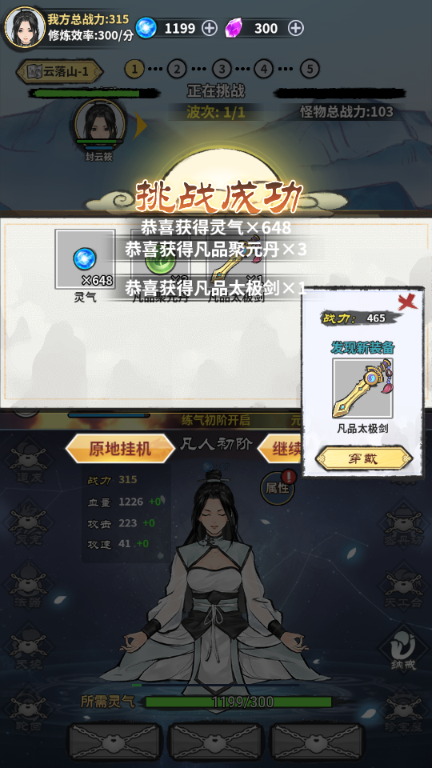4、成功通过关卡后,可获得装备、灵丹妙药等奖励,助力修为提升。