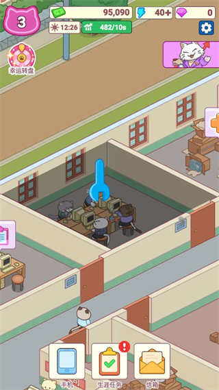 危机应对:“劳动局突击检查” 时,花 1000 金币买 “舒适办公椅”,避免罚款。