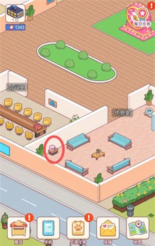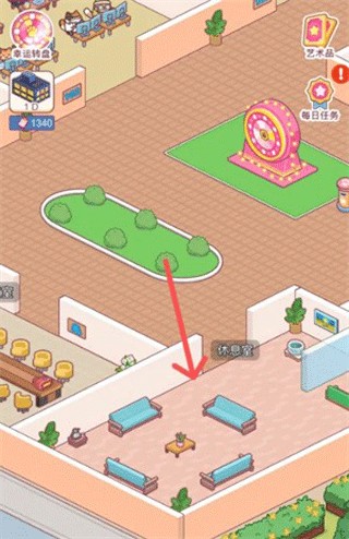1、打开游戏并进入主界面,找到休息室并点击任何一个区域进入。