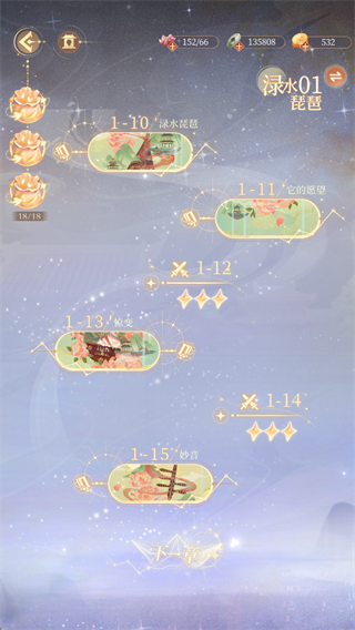 3、通过主线到1-15关卡,解锁摘星,也就是抽衣服的奖池。