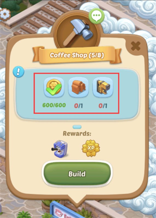 当你收集到一定数量的金币或者工具时,你可以点击相应的页面完成房屋建造