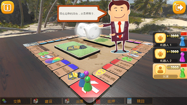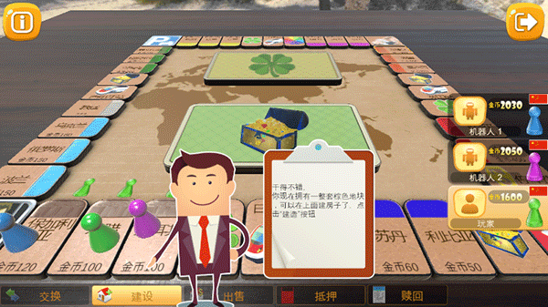3. 玩家能交易土地换货币,还能建各种房屋,升级后过路费加倍。