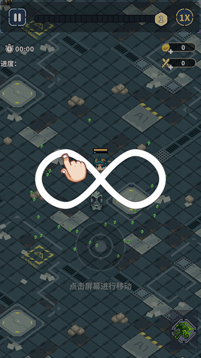 2、在这里滑动屏幕来控制角色的移动,击杀怪物赚取金币和经验值。
