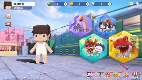 1、在手机上下载安装迷你世界国际服后,进入游戏主界面,找到右下角的商店;