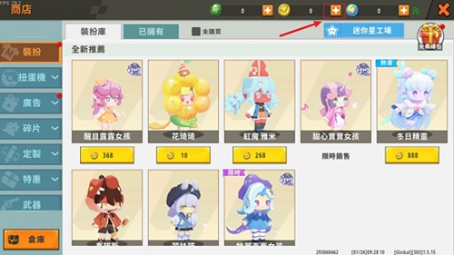2、点击进入商店后,在最上方会有迷你豆、迷你币、迷你点购买,点击后面的+号图标进去即可,这里我以充值迷你币进行演示;