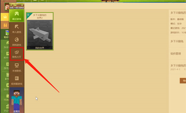 2、我的世界进入后,点击左侧的联机大厅