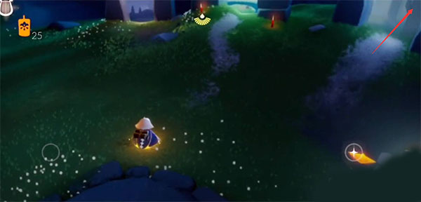 刚进入场景就先爬上眼前的巨大岩石(对你没有听错),我建议先进入洞中,后从岩石后方爬上,有一条岩石的脉络直通山顶,不许飞行,然后会得到一个光之翼(图中已经得到过)。