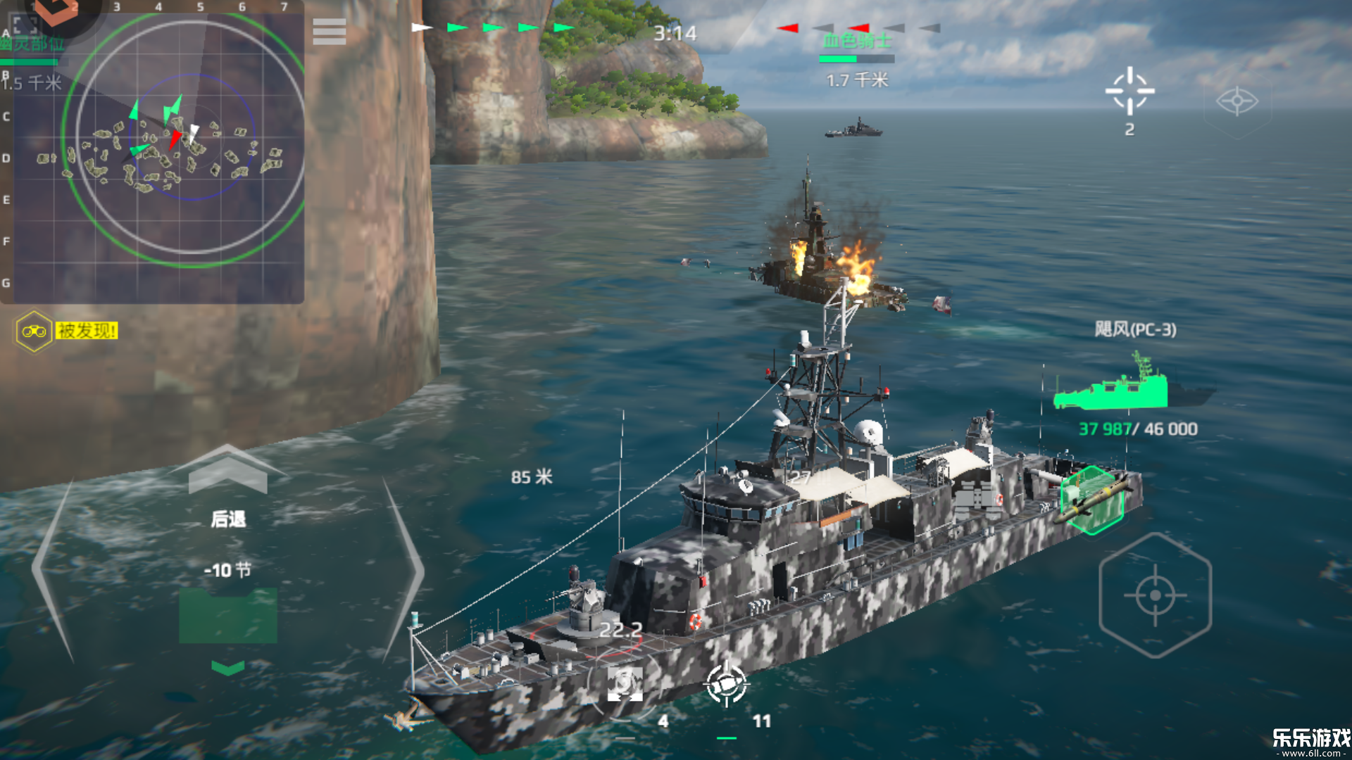 2、遇到敌人注意操控船只走位,并且向敌人射击。