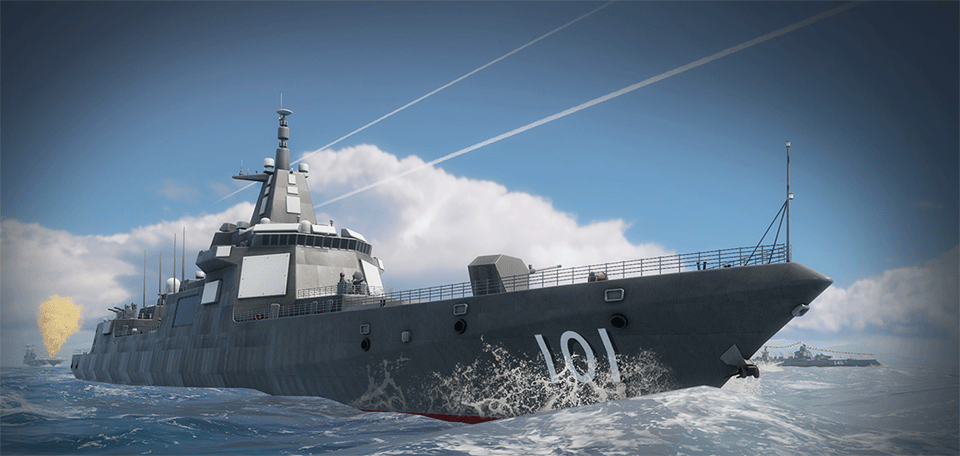 多用途对地打击驱逐舰,采用隐身设计与尖端科技,包括先进的动力系统、通信、导航和武器系统。