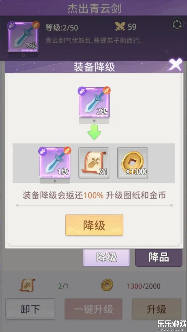 点击装备详情页面的重铸按钮,即可选择对装备进行降级或降品,在降级或降品操作完成后,系统将会返还曾用于该装备升级或合成的全部材料。