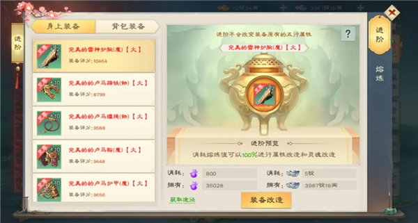 这时还需要了解一个概念是熔炼值,熔炼值可以通过熔炼自己并不需要的装备进行获取,做任务和打Boss也会有一定几率爆出。有了熔炼值之后玩家可以通过消耗熔炼值来提升装备的评价。但是装备进阶后的属性不可控,比如有些玩家追求的速度属性可能在进阶后会被其他属性替换掉。