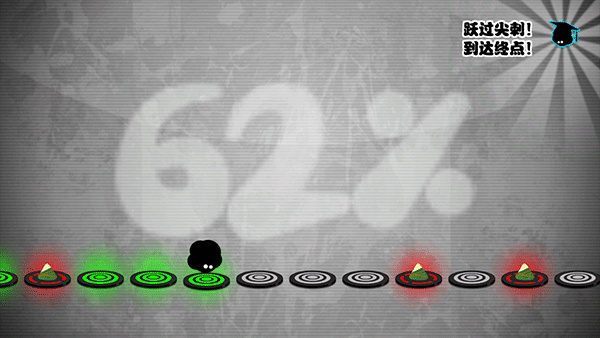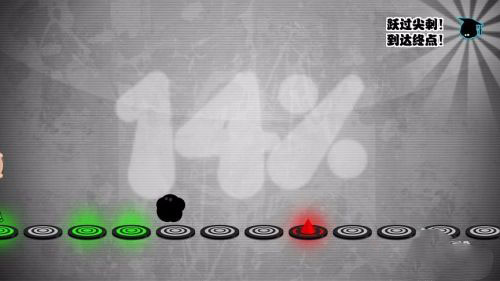 当然《永不言弃》高分只会跳跃还不够,因为闯关的过程中我们还将遇到各种陷阱由于小墨点会一个劲地前进,所以对于面前袭来的陷阱,我们需要机智地进行躲避,对于玩家的反应能力相当考验,容错率极低,只要在对应点位没有正好按下就会以失败告终。