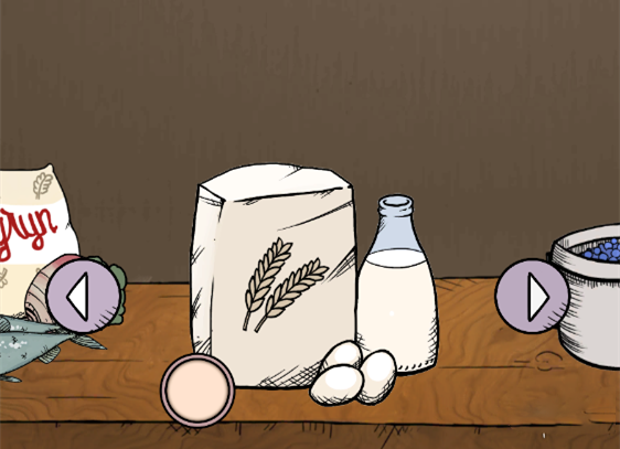 2、购买完材料之后回到家中,来到厨房,点击右边的柜子,找到材料。