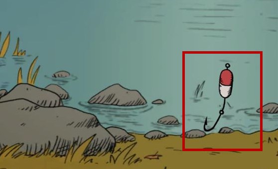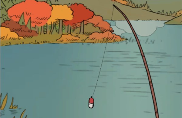 5、然后点击界面右上角的湖泊,在湖上我们可以看到一个钓鱼的鱼钩和浮标,点击它就可以开始钓鱼了。