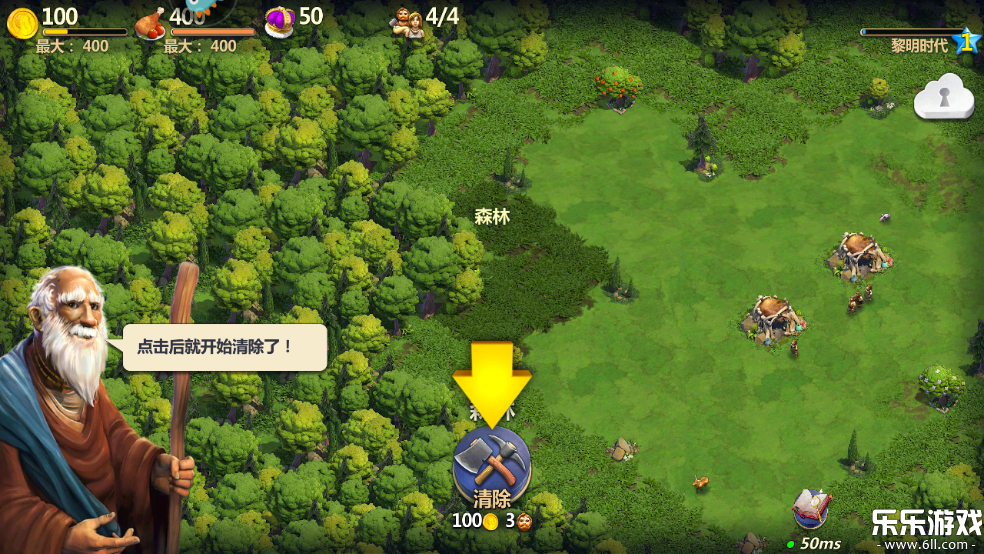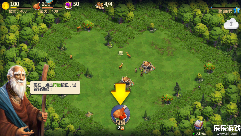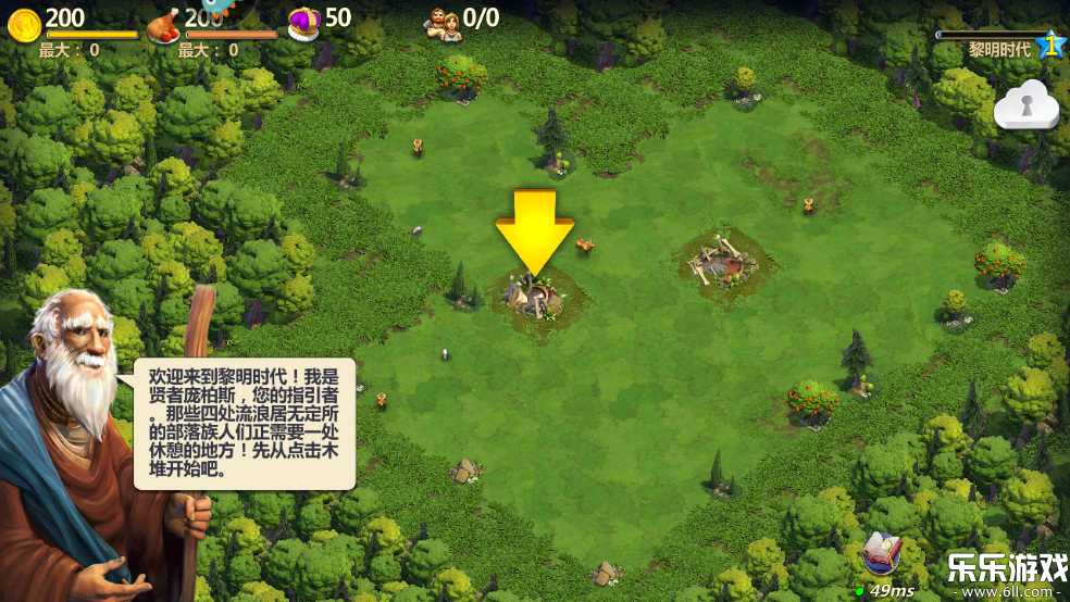 1、来到战争与文明抖音版,开局玩家就要进入新手引导,这也是你文明的起步;