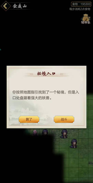 打败他后,玩家往上走走到十格左右就可以看到一处宝箱,宝箱里可以获得道具或者是炼丹材料。打开宝箱之后再向左走四格,大概就会遇到一个奇遇点。然后玩家可以一直向下走,向下走的话可以直接通向这个地图的出口。