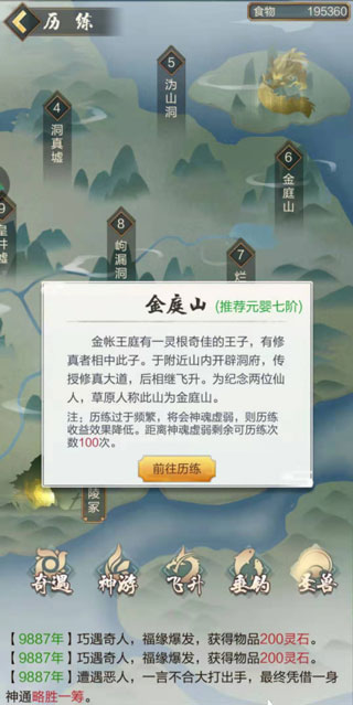在这款游戏中游戏给出了玩家很多地图,每个地图都是一个副本,金庭山就是其中之一,金庭山重要性是因为有金元丹和各种各样的青木叶、双生菊。
