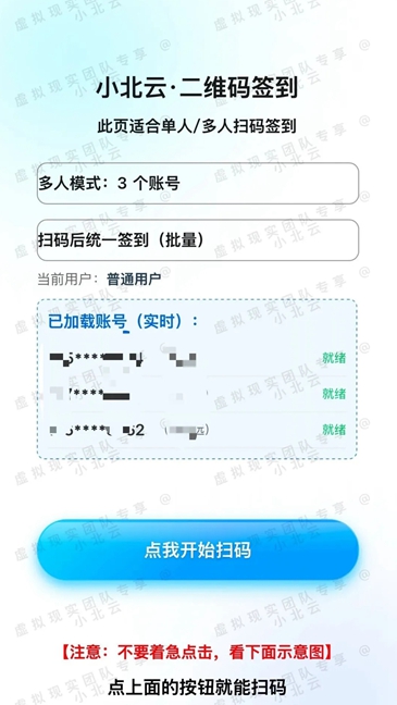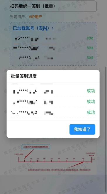 3.一起签二维码已支持同时快速处理多个用户签到,最高可支持6人秒级扫码,UI界面已优化完成;