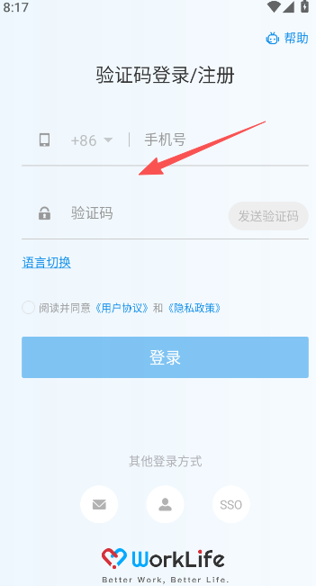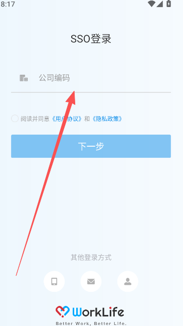 1、WorkLife登录方式可以用公司编码,账号和密码的方式进行登录。
