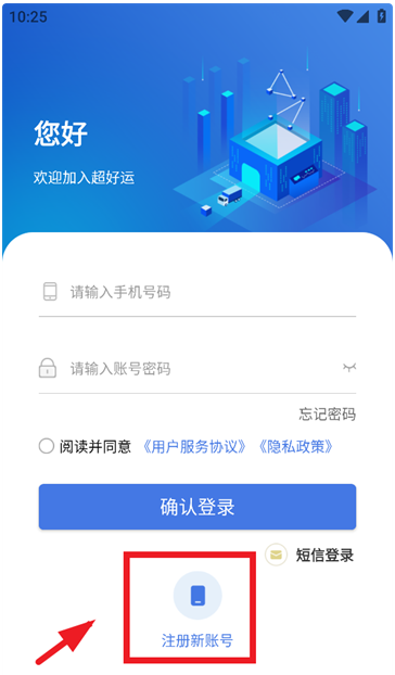 在本站下载安装并打开超好运司机版app,进入登录页面后点击注册新账号;
