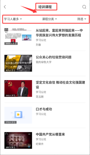 3、通过多种筛选条件查找感兴趣课程,开始学习。