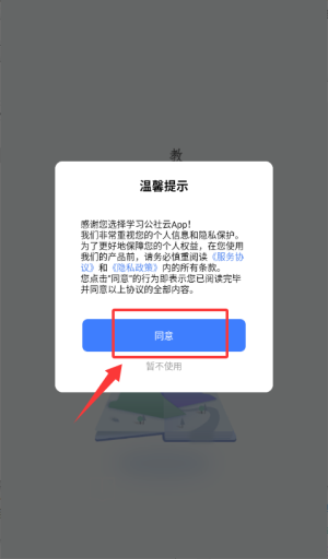 1、在温馨提示中点击"同意",即可进入应用主界面。