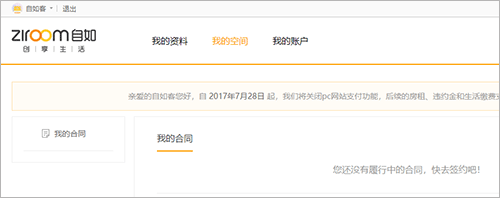 2、电子合同的下载模板是需要到网页上下载PDF格式的,所以手机版是不行的,需要登陆到网页版的自如,在个人帐号信息下选择下载合同文件。