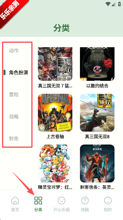 2、在游戏分类列表中选择喜欢的游戏,点击下载按钮。