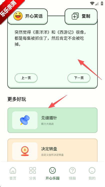 3、在开心乐园,可以看一些有趣的笑话,也可以玩一下趣味的小游戏