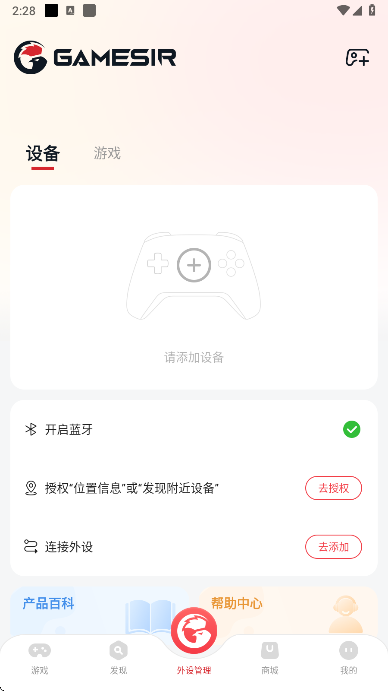 1、外设管理页面大家可以进行外设的添加,需要注意开启蓝牙哦