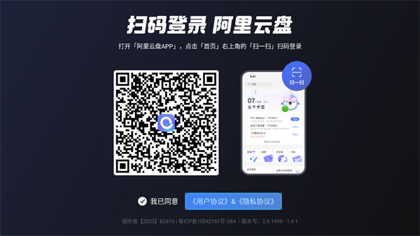 3、使用手机阿里云盘app扫码登录之后即可使用;