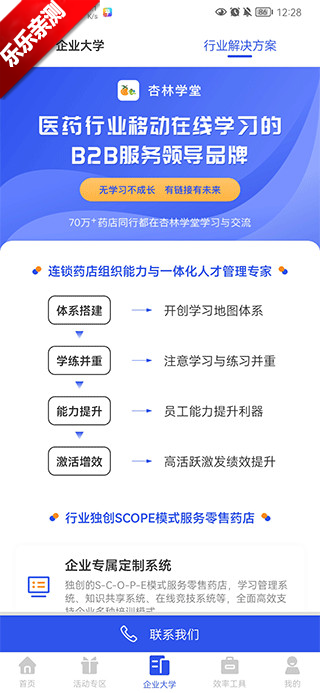 2、进入企业大学,查看各种企业课程内容,在线对企业进行测评,学习更多企业经营知识