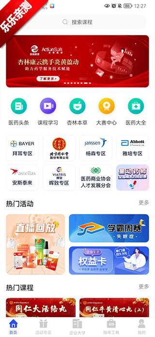 1、在杏林学堂Pro首页中查看各种热门活动内容,快速了解活动详情,在线观看最新课程